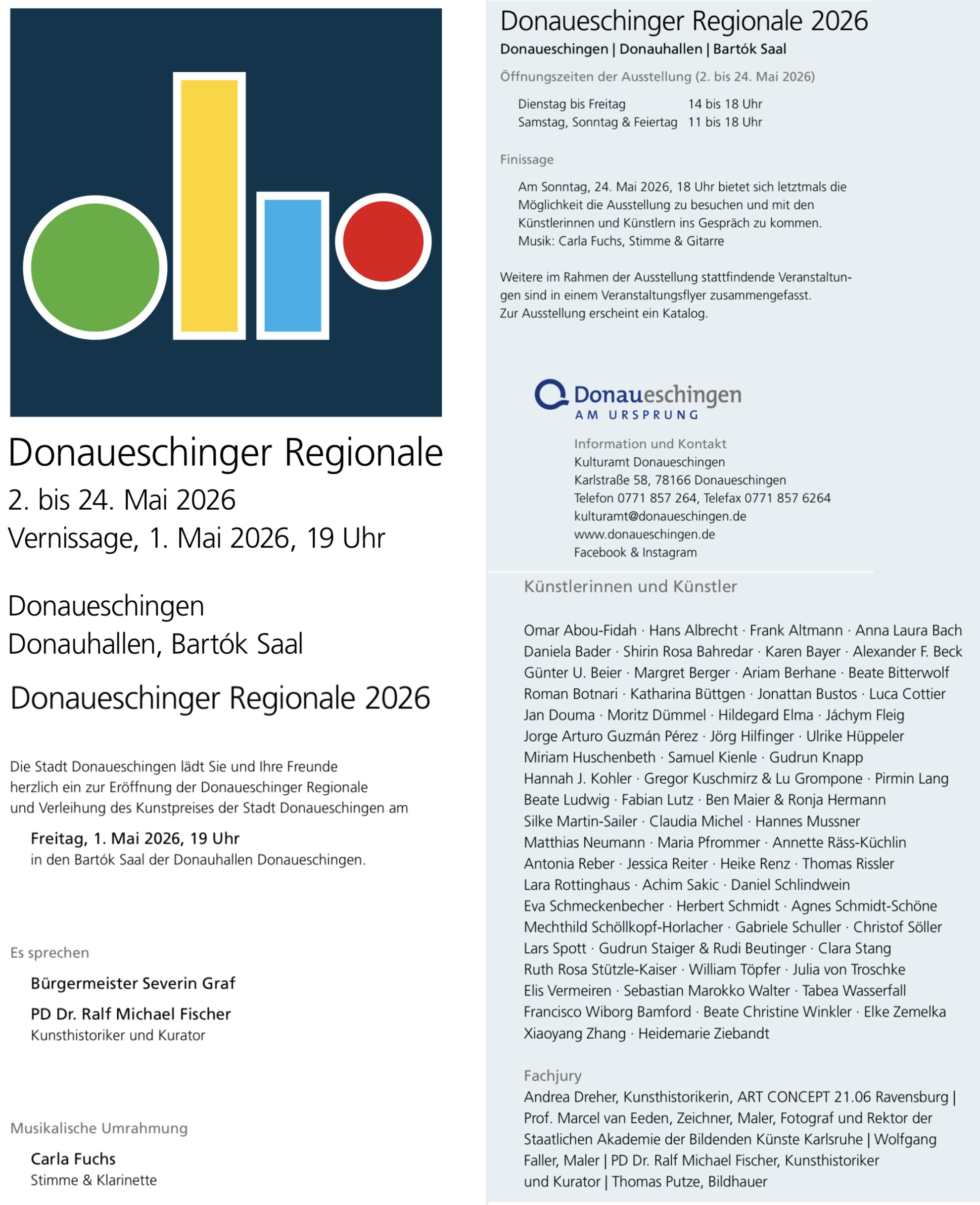 Regionale Donaueschingen vom 2.Mai - 24. Mai 2026