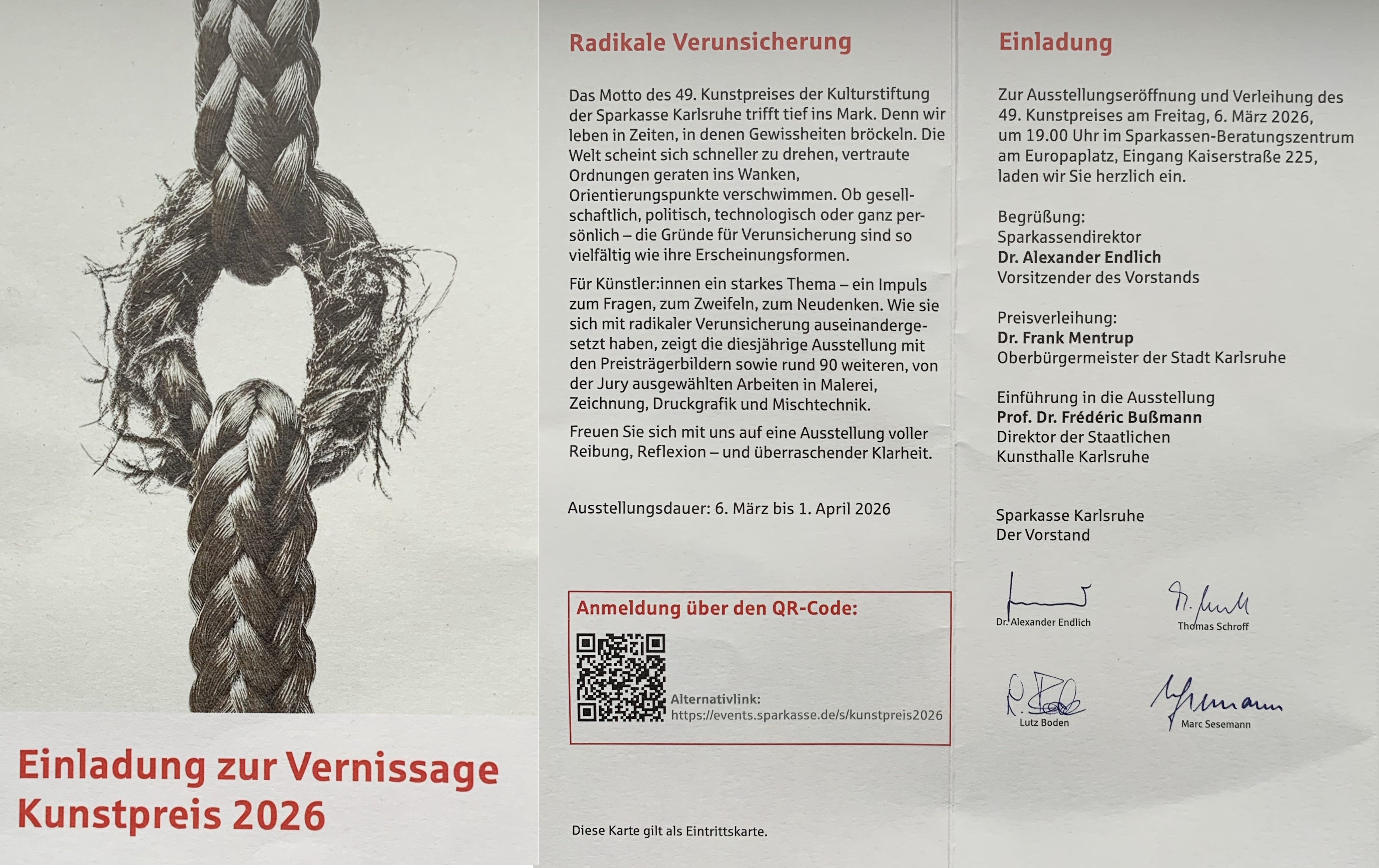 Ausstellung in der Sparkasse Karlsruhe vom 6.3. - 1.4.26