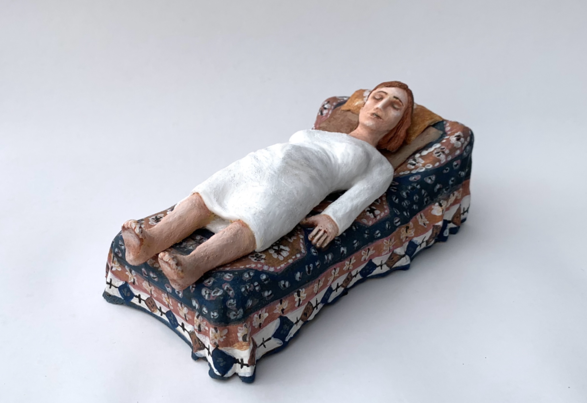 Die Künstlerin liegt auf einer Couch. Es ist die Couch von Sigmund Freud, die Verkörperung der Psychoanalyse. Sie steigt hinab in die Tiefen ihrer Seele. Versucht zu greifen, was dort lauert. Gibt dem Form. Bringt es ans Licht.