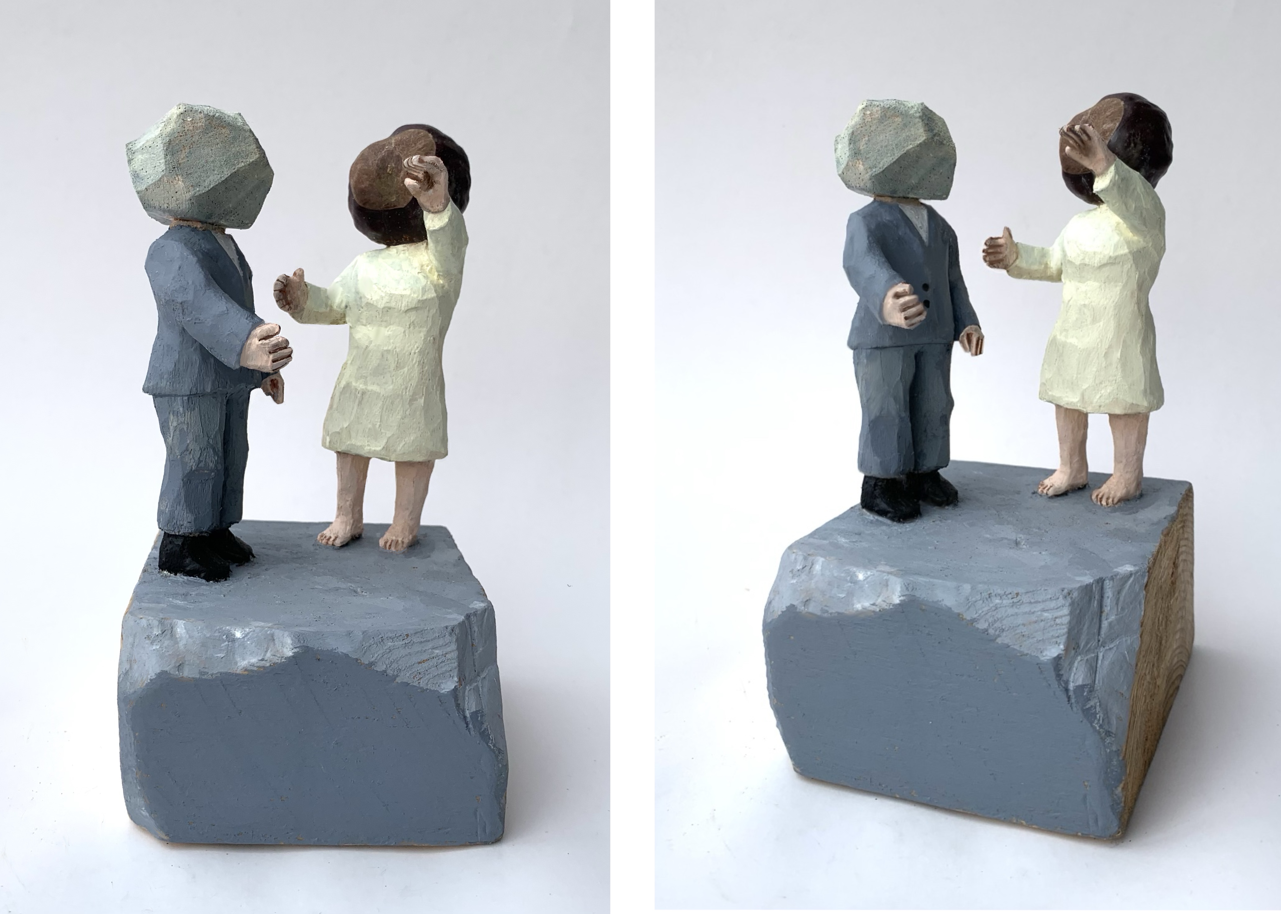 2019 bespielt Natascha Süder Happelmann den deutschen Pavillon auf der Biennale in Venedig. Bei ihren Auftritten trägt sie einen merkwürdig geformten Kunststein auf ihrem Kopf. Ich treffe die Künstlerin. Dabei trage ich eine Kastanie auf dem Kopf, das christliche Symbol für den Sieg über die Versuchung. Wir diskutieren unsere Visionen für die Gestaltung des Pavillons. Happelmann möchte irgendetwas mit Steinen machen. Ich halte dagegen, dass unter dem Pavillon etwas schlummert. Etwas, dass nachdem Hans Haake den Boden des Nazipavillons aufgerissen und demoliert hatte, wieder unter Steinplatten versteckt wurde. Meine Idee macht es sichtbar. Es bricht aus dem Untergrund hervor, die Zeit zeigt es.